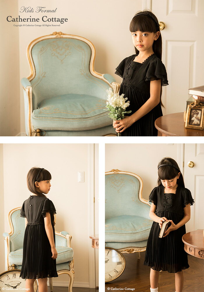 <キーワード> [ワンピース][100/110cm][120/130cm][140/150cm][160cm対応][黒][ひざ丈・ミディー丈] 360° Veiw子供ドレス シフォンプリーツ ダブルリボンワンピース シフォンプリーツ ダブルリボンワンピース Catherine Cottage どんなシーンも、 軽やかシフォンプリーツでガーリーエレガントに ハイウエスト切替から入ったプリーツが、 流れるような美しさのワンピースです。