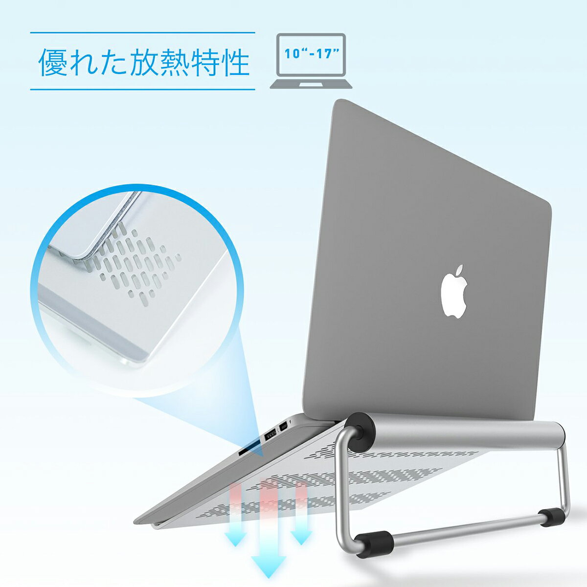 ♥【商品説明】 ◆【商品名】ノートパソコンスタンド 素材 アルミ合金 カラー シルバー&スペースグレー 製品重量 700g サイズ 約240 × 240 × 83mm ※1-2cmの誤差ご了承ください 梱包内容 スタンド本体、予備シール ◆【特徴】 【対応機種】17インチ以内のタブレットやノートパソコン、液タブ、一般的なラップトップに対応。