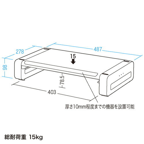 <仕様>■サイズ:W487×D278×H98.5mm ■重量:1.2kg■梱包:1個口/495×285×100mm・1.5kg■出荷形態:組立出荷■材質:HIPS樹脂■総耐荷重:15kg