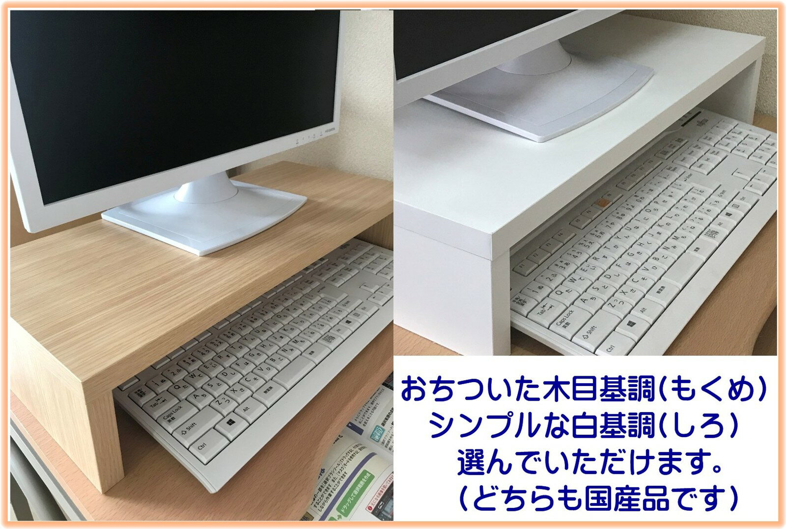 どんなPC・キーボードにも合う白色系のスタンドキーボードを収納できることで、机上を有効活用長く使ってもらえるよう、家具職人が一台一台ていねいに手作業で製作する国産品です。