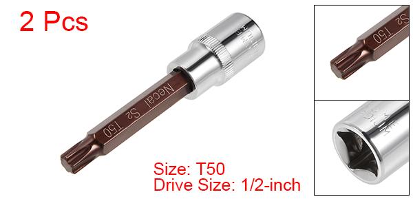 仕様: * HRC:58 *サイズ:T50 *ドライブサイズ:12.7mm *ビット長:62mm *全長:100mm *色:ブラストーン、シルバートーン *素材:S2スチール パッケージ内容: * トルクスビットソケット2個入り 注意書き ■商品の色及びサイズは、撮影状況やPC環境により多少異なって見える場合がございます。