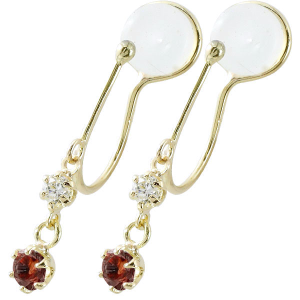 18金 イヤリング ガーネット ダイヤモンド イエローゴールドk18 シリコン クリップ式 イヤリング k18 ノンホールピアス ピアス風イヤリング ピアスみたいなピアス 1月誕生石 レディース【楽ギフ_包装】【コンビニ受取対応商品】 送料無料